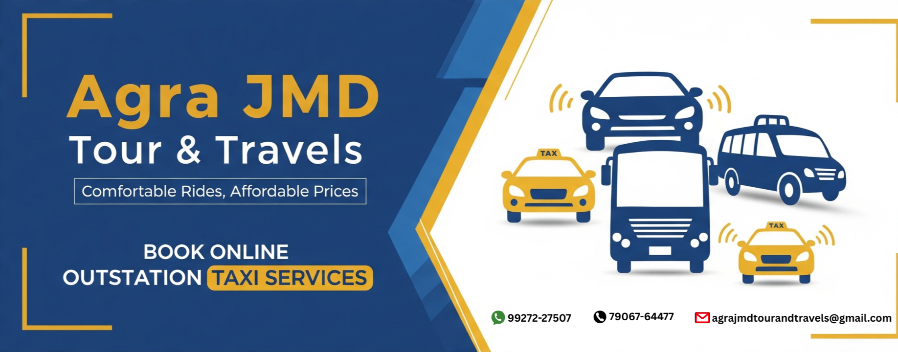 Agra JMD Tour and Travels offers a wide range of cars, taxis, cabs, buses, and luxury vehicles at affordable prices. For online booking of outstation taxi services, call us today at Whatsapp- +91 99272-27507, Call at – +91 79067-64477.